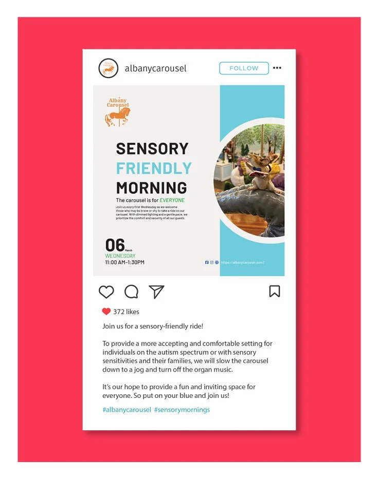 The Albany Carousel sought a vibrant re-brand to captivate a new generation of children and parents. The brand needed to have a youthful appeal while retaining its traditional look and feel. Two logos were created to represent their main brand—the carousel—and their charity program, Carousel Cares.
